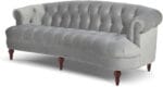 | Designed with the traditional Chesterfield style in mind, this piece hits all the key elements, with deep button tufting, nailhead accents, scrolled arms, and turned legs. |